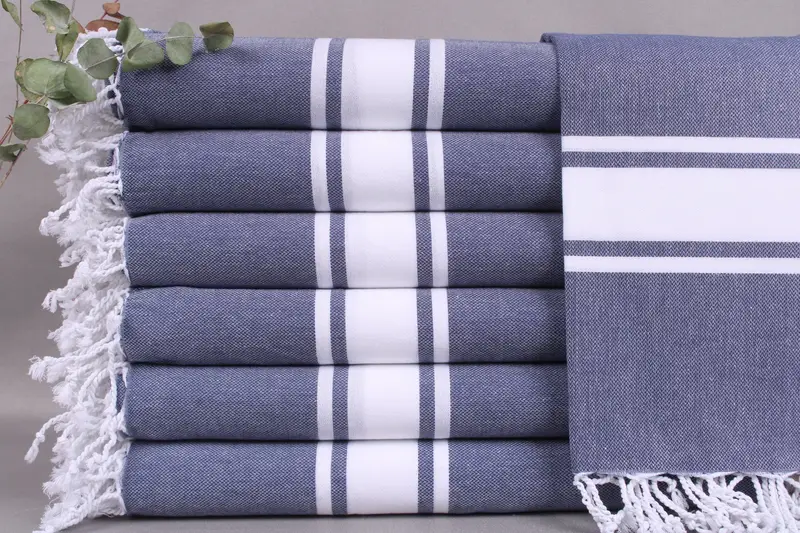 Each beach towel is woven from 100% organic Turkish cotton, ensuring superior absorbency and breathability. Resulting in a lightweight yet durable product, it measures 40x71 inches or 100x180 centimeters with a tolerance of ±2 inches or 5 centimeters. The weight of the towel is 290 grams.