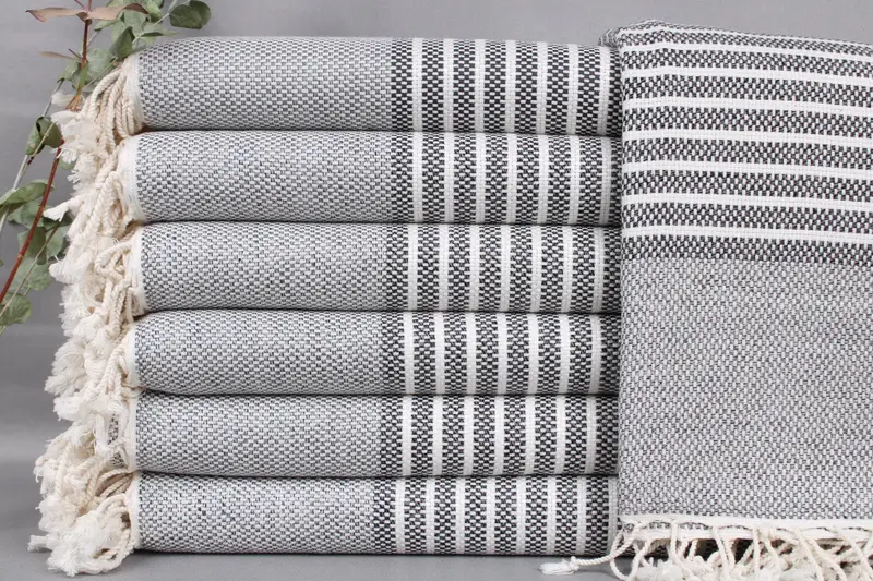 Organic Turkish cotton ensures high absorbency and durability. Characterized by a dimension of 40x75 inches or 100x190 centimeters, the weight is specified as 400 grams with a tolerance of ± 2" or 5 centimeters. The towels can be personalized with letters, names, or logos, ensuring a bespoke element.