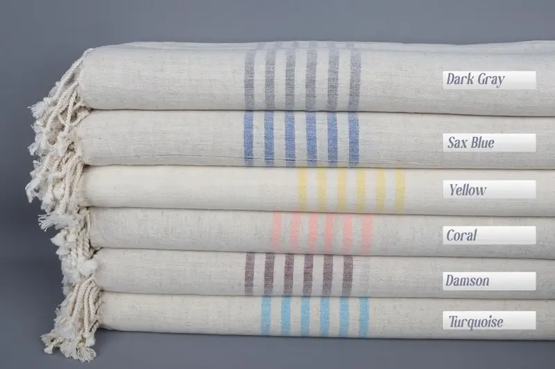 Absorbency is significantly enhanced by the Turkish cotton used in these towels, ensuring durability and quality. Characterized by hand-weaving, each piece is crafted with precision and care, resulting in minimal tolerance variations of ±2 inches or ±5 centimeters. Each towel weighs 250 grams and measures 67 inches by 36 inches or 90 centimeters by 170 centimeters.