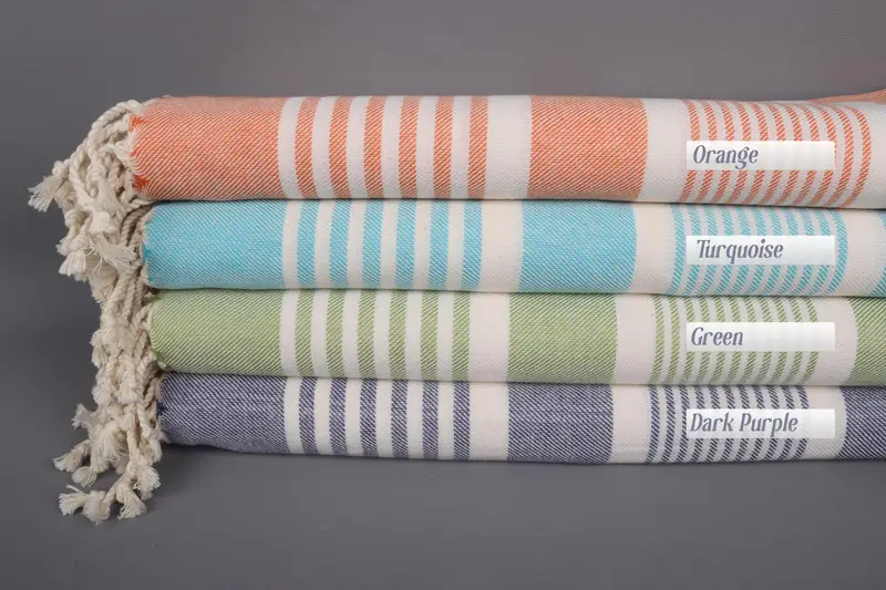 Beach Towels are characterized by their woven construction, utilizing organic cotton fibers resulting in high absorbency and durability. Ensuring a soft texture, they require initial pre-washing to enhance their softness further. Dimensions are specified in inches and centimeters with a tolerance of ±2 inches or 5 cm due to hand weaving. Each towel typically weighs 0 grams.