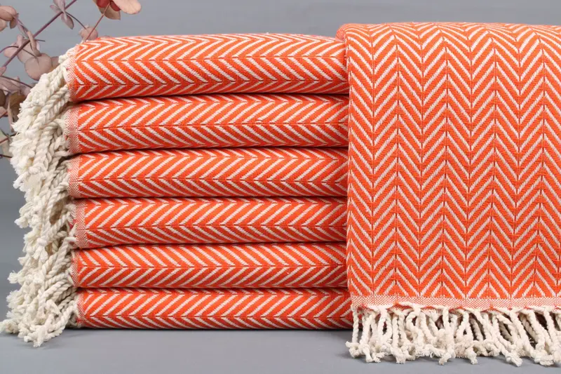 Woven from organic Turkish cotton, these beach towels ensure a high-quality, absorbent fiber composition. Resulting in lightweight yet durable products, each towel weighs between 425-475 grams. The towels, measuring 40x71 inches (100x180 cm) with a tolerance of ±2 inches (±5 cm), are meticulously hand-woven on traditional looms.
