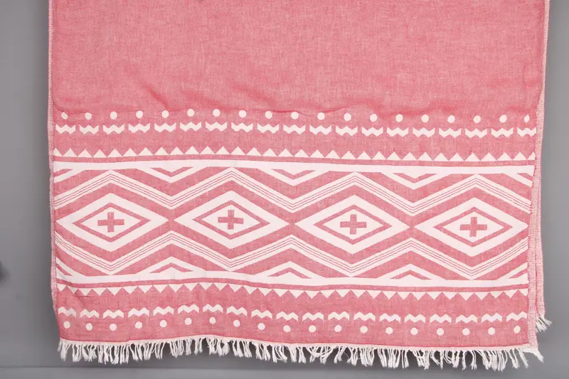 The towels, bedspreads, and blankets are woven from organic Turkish cotton, characterized by their softness and high absorbency. These items exhibit durability and breathability, ensuring longevity and comfort with repeated washing. Each towel measures 70x36 inches or 90x180 centimeters, with a weight of 300 grams. Production tolerances permit a variance of ± 2 inches or 5 centimeters due to hand-weaving.
