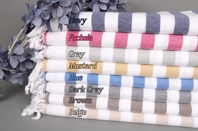 Each towel is woven from organic Turkish cotton, ensuring sustainability and comfort. This material is known for its exceptional absorbency, resulting in efficient drying and softness. The dimensions are 67x36 inches or 90x170 centimeters, with a tolerance of ± 2 inches (5 cm). Weighing approximately 300 grams, these towels are lightweight yet robust.