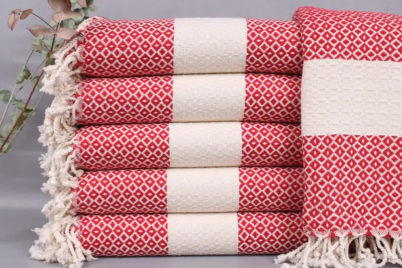 Organic Turkish cotton ensures superior absorbency and durability, resulting in a versatile, lightweight towel. Characterized by dimensions of 40x71 inches or 100x180 centimeters, these towels weigh 400 grams. Hand-weaving tolerances can result in size variations up to ± 2 inches or 5 centimeters.