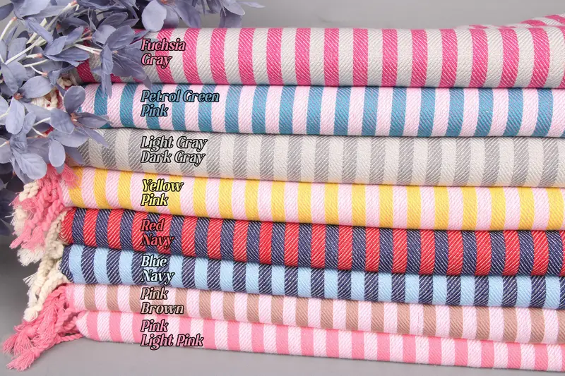 The Turkish beach towel is woven from organic cotton, ensuring sustainability and high quality. Resulting in a towel characterized by dimensions of 70x40 inches (or 100x180 cm), weighing 280 grams, with a weaving tolerance of ± 2 inches or 5 cm. Each towel, blanket, or hand towel can be personalized with letters, names, or logos, embroidered or written on the bottom middle. Orders over 35 USD benefit from free shipping worldwide, delivered via FedEx or DHL Express within 2-5 business days. Pre-shrunk towels are recommended to be washed before f...