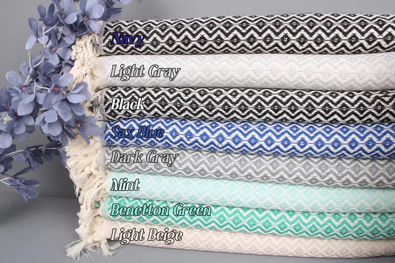 Organic cotton ensures the eco-friendliness of these towels, characterized by their hypoallergenic properties and high absorbency. These beach towels exhibit a dimension of 70x40 inches or 100x180 centimeters, weighing 400 grams with hand-weaving tolerances of ±2 inches or 5 centimeters. Customization options include embroidery or personal monograms, allowing for tailored gifts or corporate branding. Pre-shrunk status ensures consistent sizing after washing. All orders over 35 USD qualify for free shipping worldwide, facilitated by FedEx or DHL...