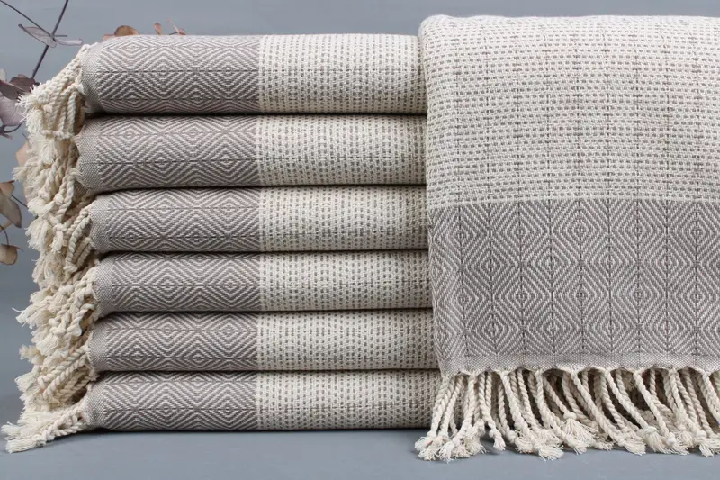 Organic Turkish cotton is utilized in the creation of these beach towels, ensuring superior absorbency and comfort. Resulting in a lightweight, breathable, and plush texture, the towels are suitable for various uses such as beach blankets, bath towels, and picnic blankets. Each beach towel is handcrafted with precision, measuring 40x71 inches or 100x180 centimeters. The weight ranges between 425-475 grams, with a permissible weaving tolerance of ± 2 inches or 5 centimeters.