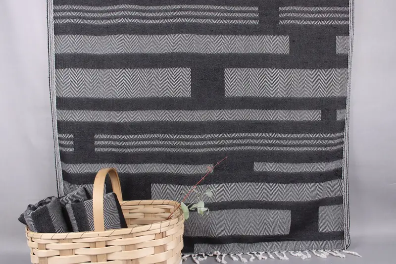 Constructed from organic Turkish cotton, these beach towels exhibit high absorbency and durability. Each towel, woven by hand on traditional looms, measures 38x67 inches or 95x170 centimeters, ensuring uniform coverage for various applications. Variations in dimensions are within ±2 inches or 5 centimeters due to hand-weaving tolerances, with a weight of 400 grams.