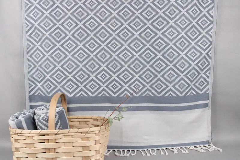 Turkish towels are characterized by their fiber composition of organic Turkish cotton, ensuring excellent absorbency and softness. Resulting in a towel that becomes progressively softer with each wash, they should be washed individually for the first two washes and subsequently at 30-40 degrees Celsius on low cycles, followed by drying. Each beach towel measures 69x36 inches or 175x90 centimeters and weighs 420 grams, with a hand-weaving tolerance of ±2 inches or 5 centimeters.