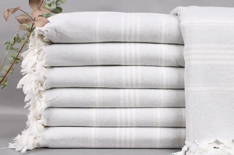 Organic Turkish cotton ensures superior absorbency and durability, characterized by its hypoallergenic properties. Measuring 40x71 inches or 100x180 centimeters with a weight of 430 grams, each towel exhibits a hand-weaving tolerance of ±2 inches or 5 centimeters. Personalization options include embroidery or monogramming with specific details regarding letters, fonts, and placement.