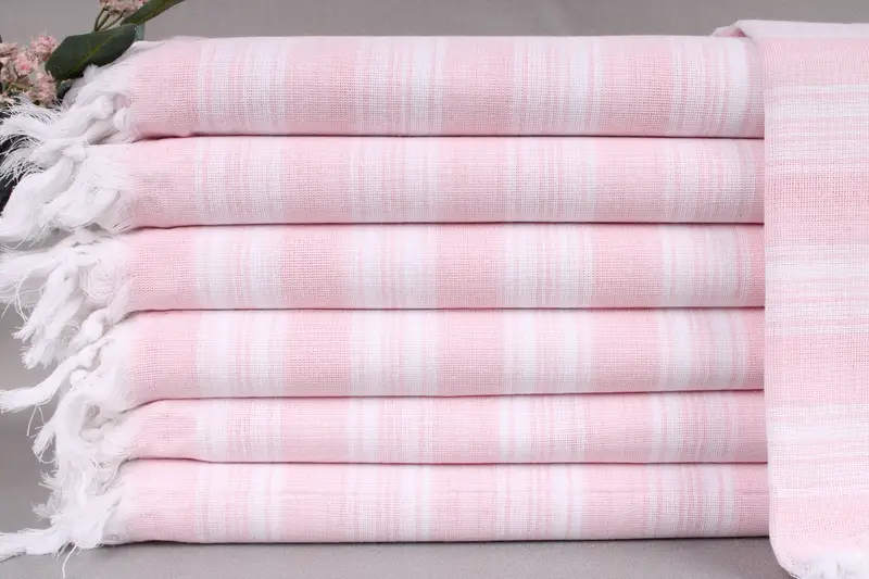 Turkish Beach Towels are composed of organic Turkish cotton, ensuring superior absorbency and durability. These towels are meticulously hand-woven on traditional looms, resulting in a robust yet soft textile. Characterized by a dimension of 40x71 inches (100x180 centimeters) with a tolerance of ±2 inches (±5 centimeters) due to hand-weaving techniques. Each towel weighs 124 grams and can be personalized with custom embroidery or text.
