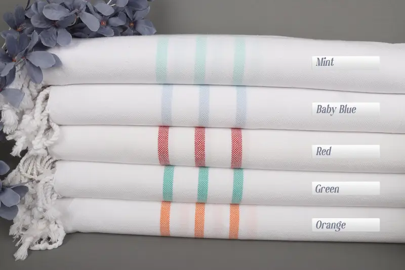Our handmade gift, Monogram Turkish towel, presents a 40"x71" sub-category beach towel crafted from organic cotton, ensuring sustainability and high absorbency. Characterized by a beige secondary color, the striped towel measures 70x40 inches or 100x180 centimeters with a weight of 390 grams, exhibiting hand-weaving tolerances of ±2" or 5cm. Personalization options include embroidery or monogramming with letters, names, or logos, which can be specified with detailed notes on the font, color, and placement.