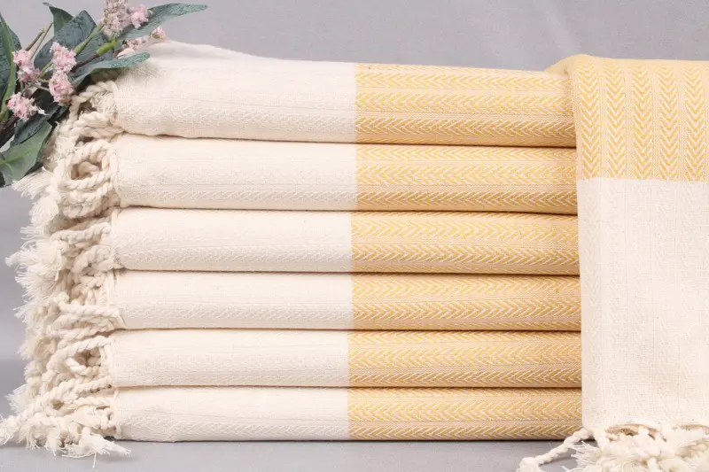 Each custom Turkish towel is crafted from organic Turkish cotton, ensuring superior absorbency and quality. Characterized by meticulous hand-weaving, these towels measure 67x36 inches or 170x90 centimeters, with a weight of 420 grams and a manufacturing tolerance of ±2 inches or 5 centimeters. Embroidery customization is available, allowing personalization with letters, names, or logos. Towels should be pre-washed for optimal softness and should be washed separately for the first few cycles to maintain color integrity.