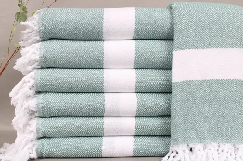 These beach towels are woven from organic Turkish cotton, ensuring superior absorbency and durability. Measuring 40x71 inches or 100x180 centimeters with a weight of 360 grams, they exhibit a weaving tolerance of ± 2 inches or 5 centimeters. Each piece is meticulously hand-woven, resulting in high-quality craftsmanship.