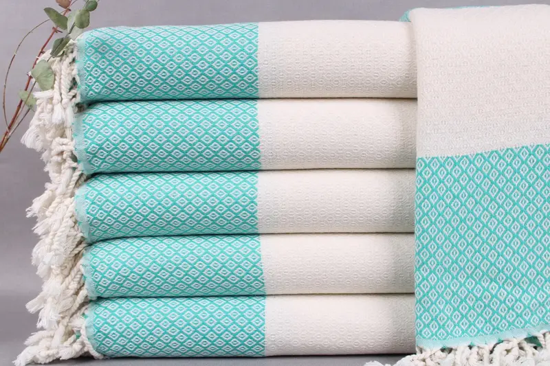 Dimensions for the beach towel are precise, allowing for minor deviations during manual production. Hand-weaving techniques ensure unique textures and patterns, e...