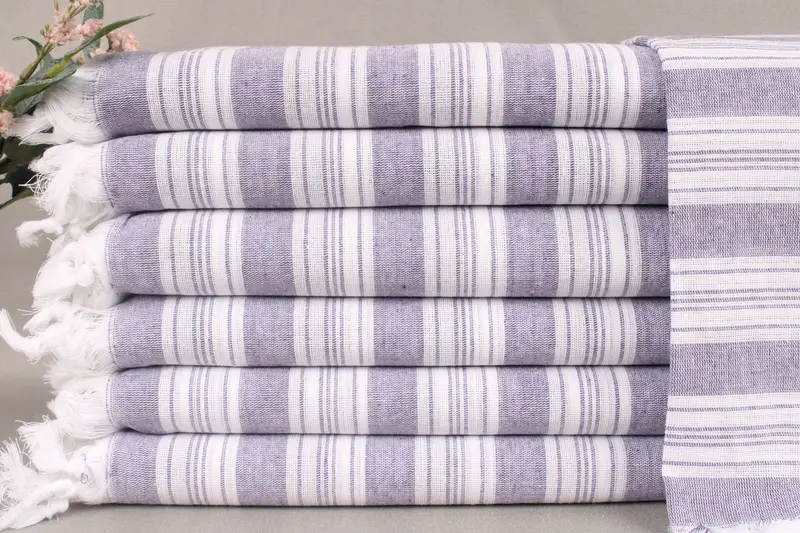 Organic Turkish cotton ensures premium quality and durability, resulting in soft and hypoallergenic hand-woven beach towels. Characterized by a standard size of 40x71 inches (100x180 centimeters) with a tolerance of ±2" (5cm) and a weight of 124 grams, these towels maintain consistent quality. Embroidery customization options, pre-shrunk status, and free shipping for orders over 35 USD are available, with international delivery handled via FedEx or DHL Express. Return/exchange policies can be reviewed on the seller's page. Turkish towels requi...