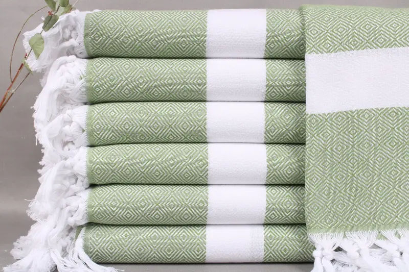 The Turkish Beach Towel is woven from organic Turkish cotton, ensuring a high-quality and soft texture. This towel, characterized by its light khaki green hue, measures 40x71 inches or 100x180 centimeters, with a weight of 360 grams per piece. Due to the hand-weaving process, there may be size tolerances of up to ± 2 inches or 5 centimeters. Each beach towel can be personalized with monograms or designs, allowing customers to customize their purchase with specific letters, names, or logos. Additionally, orders over 35 USD are eligible for free ...