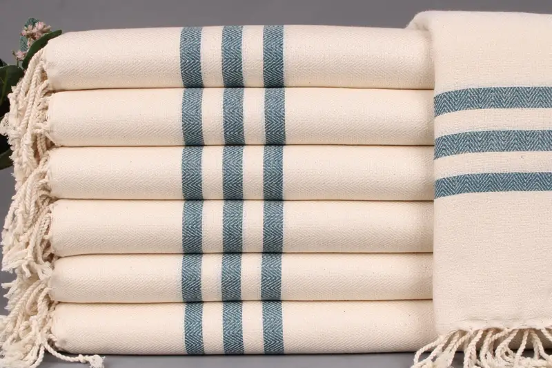 Each listing of the Beach Towel is woven from Organic Turkish Cotton on looms, ensuring premium quality. These towels have a size of 40x71 inches or 100x180 centimeters and weigh 250 grams. They are characterized by a hand-weaving tolerance of ± 2 inches or 5 centimeters.