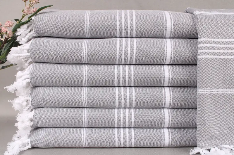 Weaving characteristics ensure superior durability and absorbency for the personalized Turkish beach towel, which is crafted from organic Turkish cotton. Measuring 71x40 inches (180x100 cm), the towel features a weight of 265 grams, providing a comfortable hand-feel while ensuring a ±2 inches (5cm) tolerance due to its hand-weaving process. Customization options allow for personal touches, such as embroidery or lettering, enhancing its utility as a versatile accessory for beach, spa, or picnic use.