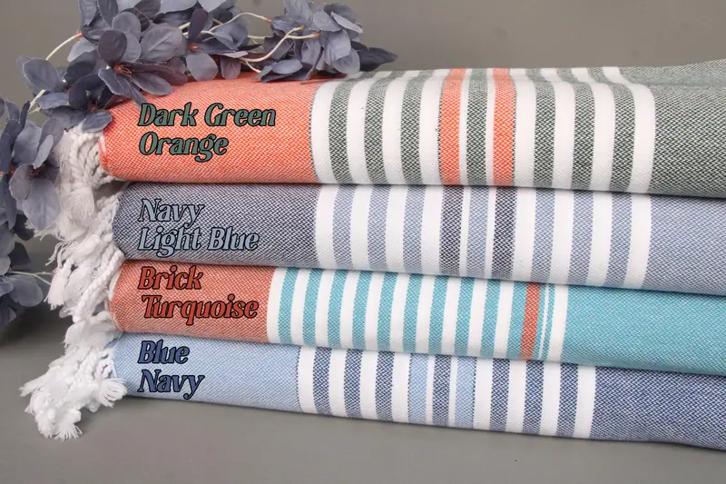 Organic cotton towels, characterized by their natural absorbency and softness, are woven from Turkish cotton on traditional looms. Ensuring a premium product, these towels are personalized using embroidery or name options, which can include letters, names, or logos in selected fonts and colors, with placement typically at the middle of the bottom. Measuring 67x40 inches (100x170 centimeters) and weighing 220 grams, each piece is handmade with a tolerance of ±2 inches or 5 centimeters. Towels are pre-shrunk and recommended to be washed before us...