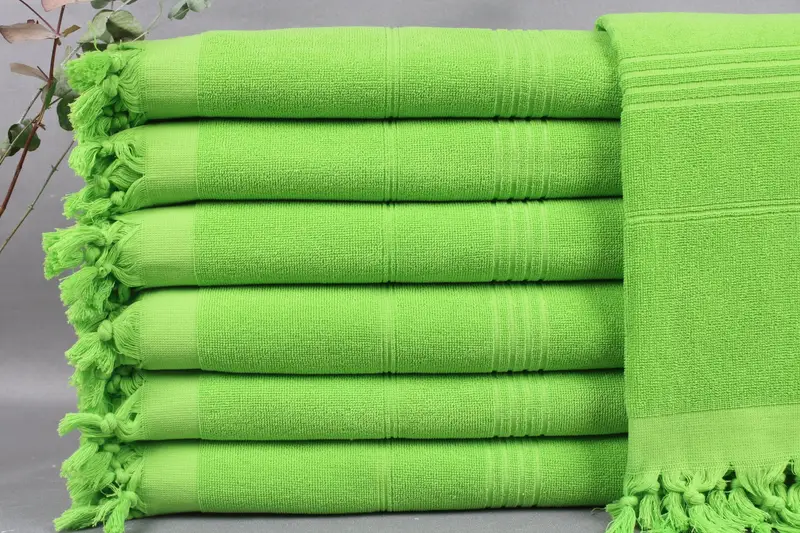 Turkish beach towels are woven from organic Turkish cotton, ensuring high quality and absorbency. Characterized by their 36x71-inch (90x180 cm) dimensions and 500-gram weight, these towels exhibit a weaving tolerance of ±2 inches (5 cm).