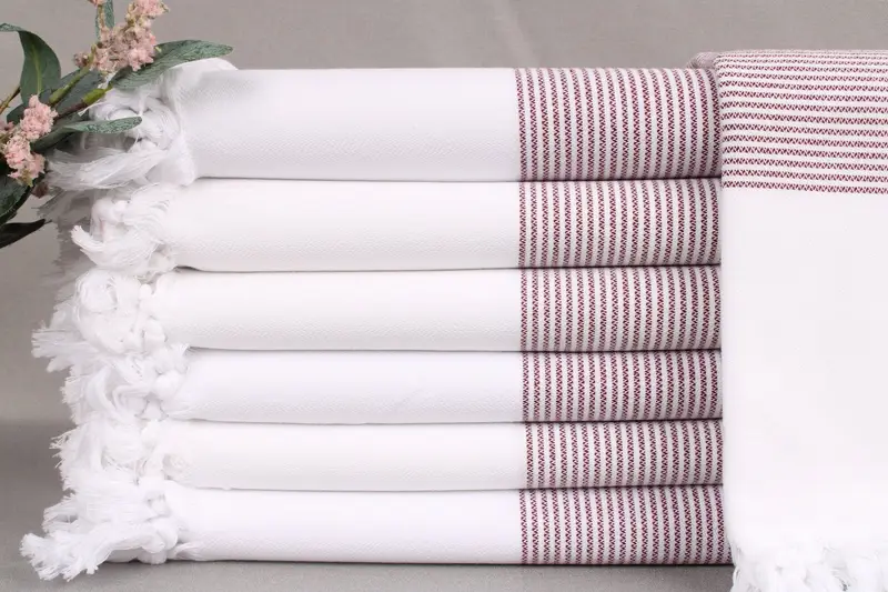 These towels are woven from organic Turkish cotton, ensuring high-quality absorbency and durability. Resulting in a soft texture, they are suitable for diverse uses, from beach towels to bath towels. Each towel measures 40x71 inches or 100x180 centimeters, weighing 290 grams, with a weaving tolerance of ±2 inches or 5 centimeters.
