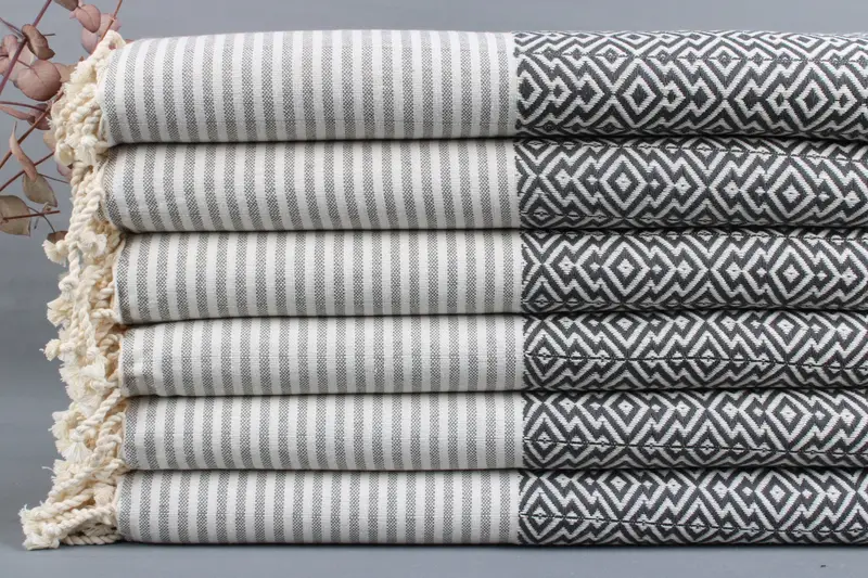 Woven from organic Turkish cotton, the towels are characterized by their exceptional absorbency and durability. Each piece, measuring 40x70 inches or 100x180 centimeters, ensures uniformity and reliability in usage. Weight ranges between 425-475 grams, ensuring a balance of softness and substantialness.