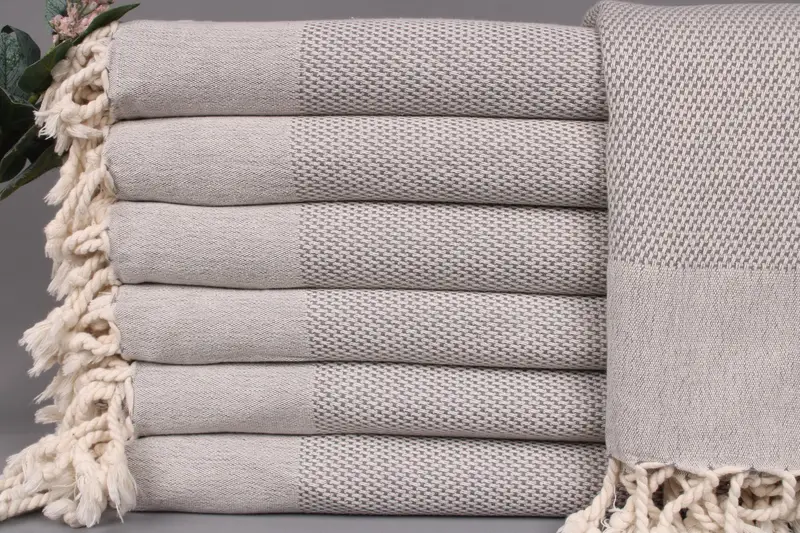 Woven from organic Turkish cotton, these beach towels ensure high quality and natural absorbency, ideal for various uses. Characterized by precise dimensions of 40x71 inches or 100x180 centimeters, the weight of the towels is 390 grams. Hand-weaving tolerances may result in size variations of ± 2 inches or 5 centimeters.