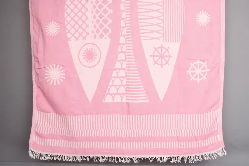 The beach towel is characterized by its robust composition, crafted from organic Turkish cotton, ensuring exceptional durability and softness. Resulting in a towel that is both absorbent and lightweight, its careful hand-weaving on looms yields a product of high quality. Specifications indicate that the towel measures 69x38 inches or 95x175 centimeters, with a weight of 300 grams, exhibiting a tolerance of ±2 inches or 5 centimeters due to manual weaving.
