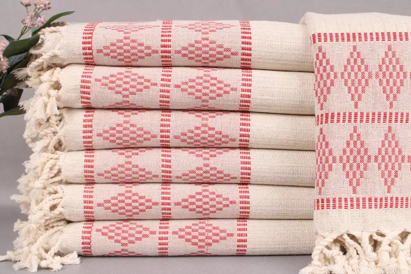 Fiber composition is integral to the Turkish Bath Towel's performance, as the towels are woven from Organic Turkish Cotton, ensuring high absorbency and durability. Resulting in a lightweight yet robust textile, each towel is characterized by its ± 2" or 5cm tolerance in weaving.