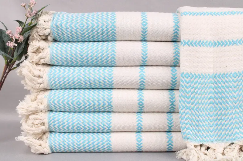 Specifically, the Turkish beach towels and related items are handmade on looms. Size variations are common due to the hand-weaving process. Initial washes are recommended to enh...
