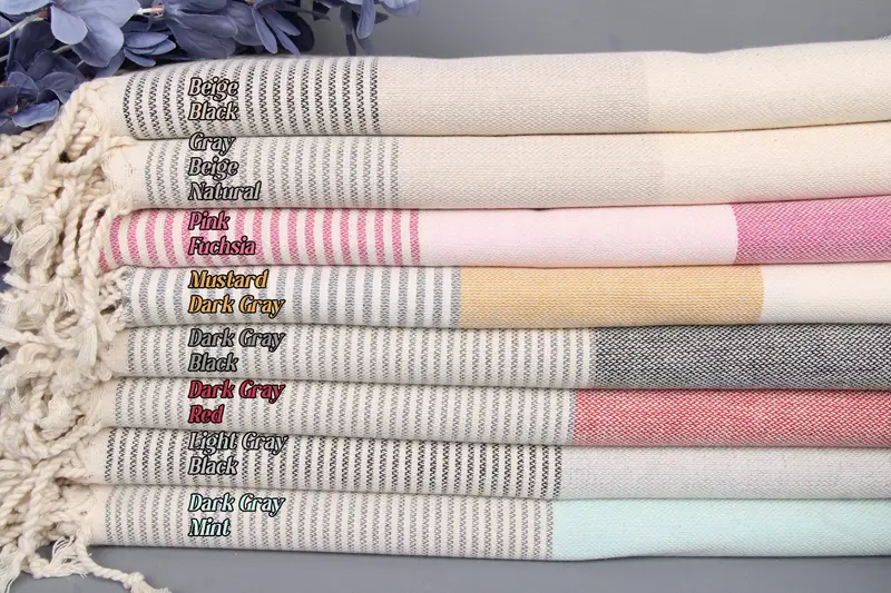 Constructed from organic Turkish cotton, this beach towel exhibits high absorbency, ensuring efficient moisture wicking. Characterized by its dimensions of 70x40 inches or 100x180 centimeters, it weighs 350 grams. Weaving tolerances are ±2 inches or 5 centimeters, resulting in consistent product quality.