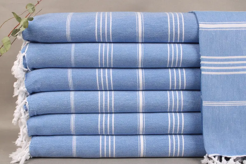 The product is made from organic Turkish cotton, ensuring enhanced absorbency and durability. Each beach towel is hand-woven on looms, resulting in meticulous craftsmanship with potential size variations of up to ±2 inches or 5 cm due to the weaving process. Weighing approximately 265 grams, the towels measure 40x71 inches or 100x180 centimeters.