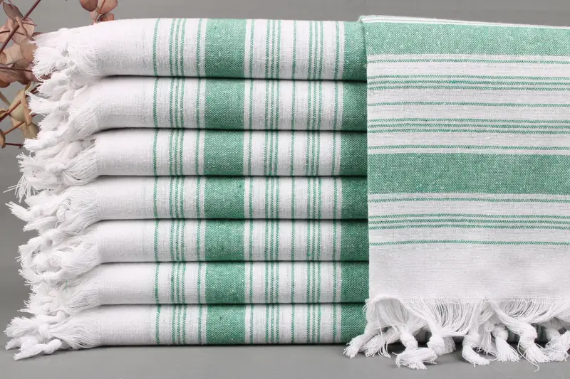 Turkish beach towels, known for their Turkish cotton fibers, ensure high absorbency and durability. Characterized by dimensions of 40x70 inches or 100x180 centimeters, these towels weigh between 425-475 grams. Weaving tolerances allow for a variation of ± 2 inches or 5 centimeters.