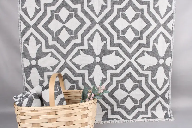 Each Turkish beach towel is woven from organic Turkish cotton, ensuring durability and high absorbency. Resulting in a lightweight yet strong towel, the fiber composition is characterized by hypoallergenic properties, making it suitable for sensitive skin. Measuring 36x67 inches or 90x170 centimeters, with a tolerance of ± 2 inches or 5 centimeters due to hand-weaving, these towels weigh approximately 310 grams.