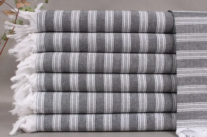 All towels are woven from organic Turkish cotton, ensuring superior absorbency and durability. Characterized by dimensions of 40x71 inches (100x180 centimeters) and a weight of 210 grams, these towels allow for a ±2" (5cm) tolerance due to hand-weaving. Resulting in a personalized touch, each towel can be embroidered with letters, names, or logos as specified by the customer.