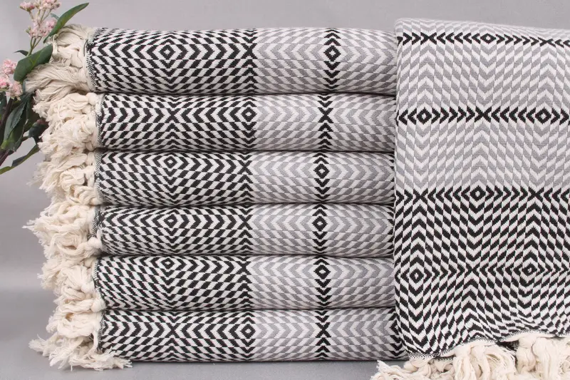 Characterized by superior absorbency, these beach towels are woven from organic Turkish cotton, ensuring softness and durability. Each piece, measuring 40x79 inches or 100x200 centimeters, weighs 460 grams and features a tolerance of ±2 inches or 5 centimeters in size due to hand-weaving. Resulting in a high-quality product, these towels are pre-washed to prevent shrinkage.