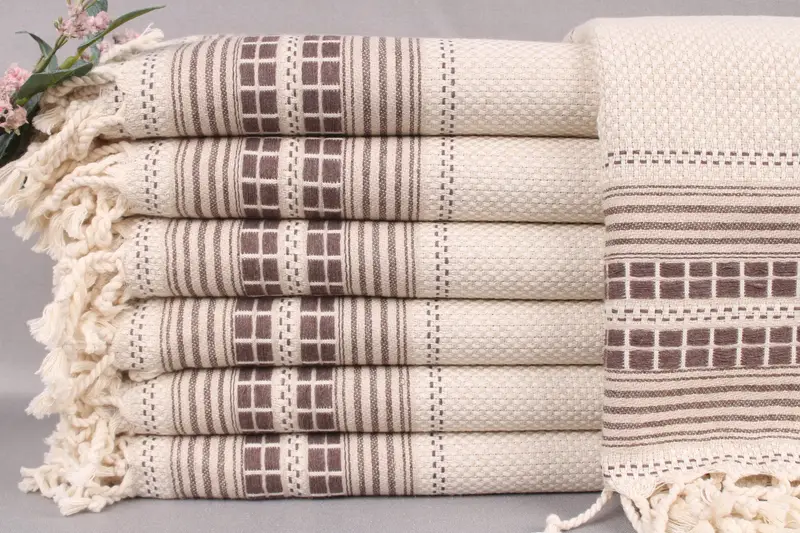 Characterized by hand-weaving, these beach towels are woven from organic Turkish cotton, ensuring a durable and high-quality product. Resulting in towels that are soft and absorbent, ideal for various applications. Each towel measures 38x65 inches or 95x165 centimeters, with a weight of 420 grams and a weaving tolerance of ±2 inches or 5 centimeters.