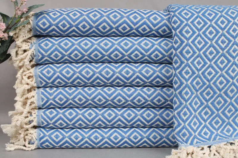 Each towel is crafted from organic Turkish cotton, ensuring superior absorbency and durability. Characterized by dimensions of 40x71 inches or 100x180 centimeters, each towel weighs 440 grams and is woven by hand with a tolerance of ±2 inches or 5 centimeters. Resulting in handmade products with slight variations in size.