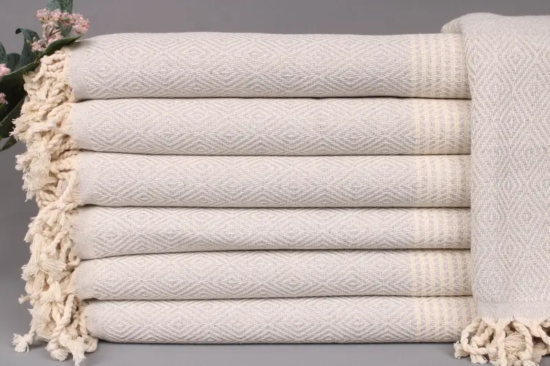 Dimensions remain precise, with each towel providing a dimension allowance of ± 2" (5 cm) due to hand-weaving. This meticulous process ensures each product conforms to the specified weight of 460 grams, resulting in towels ready for various uses.