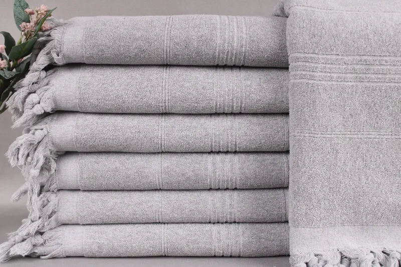 Each listing comprises a towel woven from organic Turkish cotton, ensuring exceptional absorbency and durability. Measuring 36x71 inches or 90x180 centimeters, the towels weigh approximately 500 grams, with size tolerances of ± 2 inches or 5 centimeters due to hand weaving. Personalization options include embroidery or monogramming with specific detailing on placement and font choice.