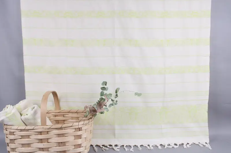 Characterized by their organic Turkish cotton composition, these towels exhibit high absorbency, ensuring efficient moisture management. Resulting in towels that are soft yet durable, with a measurable dimension of 40x71 inches or 100x180 centimeters, their weight stands at 300 grams. Handwoven with precision, the dimensions allow for a tolerance of ± 2 inches or 5 centimeters.