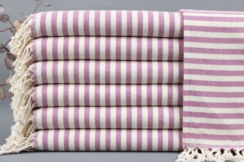The towels are meticulously woven from organic Turkish cotton, ensuring high quality and durability. Each towel measures 24x40 inches or 60x100 centimeters, with a weight of 130 grams per unit. The weaving process allows for a tolerance of ± 2 inches or 5 centimeters in size due to handcrafting.