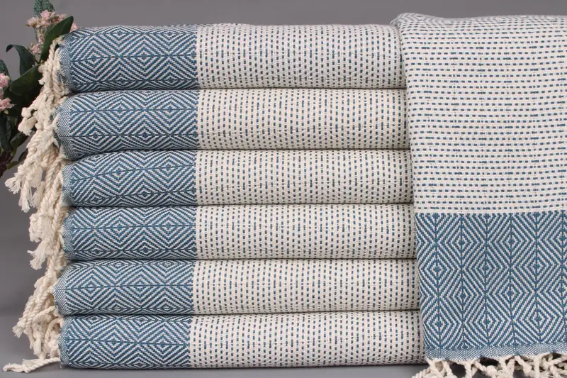 Woven from organic Turkish cotton, these towels ensure superior absorbency and durability, resulting in long-lasting use and softness with each wash. Each piece, sized at 18x36 inches or 45x90 centimeters, weighs approximately 200 grams, and hand-weaving tolerances allow for variations of ±2 inches or 5 centimeters.