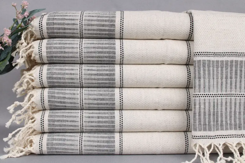 Each dish towel is woven from organic Turkish cotton, ensuring excellent absorbency and durability. Resulting in dimensions of 20x40 inches or 50x100 centimeters, with a weight of 120 grams, the towels exhibit a hand-weaving tolerance of ±2 inches or 5 centimeters. Personalization options include embroidery or name placement, with specified details such as letters/names/logos, font choice, color, and placement. All orders over 35 USD qualify for free worldwide shipping delivered via FedEx or DHL Express within 2-5 business days. Each towel shou...