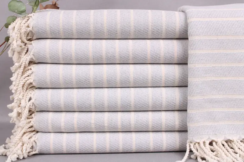 These towels, characterized by high-quality Turkish cotton, ensure exceptional absorbency and softness, making them suitable for diverse applications. Measuring 40x71 inches or 100x180 centimeters, each towel weighs 425 grams and is handcrafted with a tolerance of ± 2 inches or 5 centimeters. Resulting in a personalized touch, they allow for embroidery or name additions, complying with specific placement guidelines.