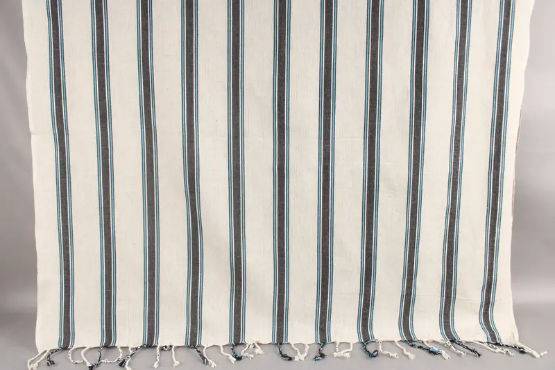All beach towels, hand towels, and blankets are woven from organic Turkish cotton, ensuring durability and high absorbency. Resulting in a lightweight yet robust fabric, each piece measures 38x71 inches (95x180 cm) with a weight of 250 grams. The hand-weaving process introduces a tolerance of ±2" (5 cm).