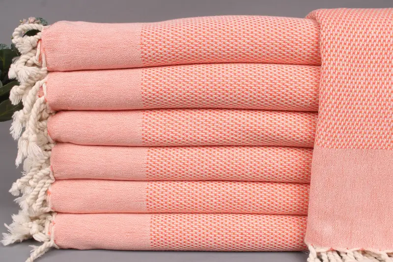 Woven from organic Turkish cotton, these towels are characterized by their high absorbency, ensuring superior performance. Resulting in a product that is both durable and soft, the towels measure 40x71 inches or 100x180 centimeters, with a weight of 390 grams. They are meticulously hand-woven with a tolerance of ± 2 inches or 5 centimeters.