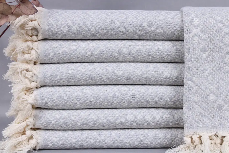 The Turkish beach towel is fabricated from organic Turkish cotton, ensuring durability and absorbency. Characterized by meticulous hand-weaving, the towel measures 40x71 inches or 100x180 centimeters, with a tolerance of ± 2 inches or 5 centimeters. Weighing 450 grams, it offers substantial coverage.