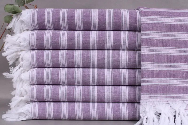 Woven from organic Turkish cotton, the towels exhibit superior absorbency, ensuring a luxurious feel and durability. Resulting in a plush texture, these towels are crafted on looms with a 40x71 inches dimension and a weight of 210 grams. Tolerances for size variation are within ±2 inches or 5 centimeters due to manual weaving.